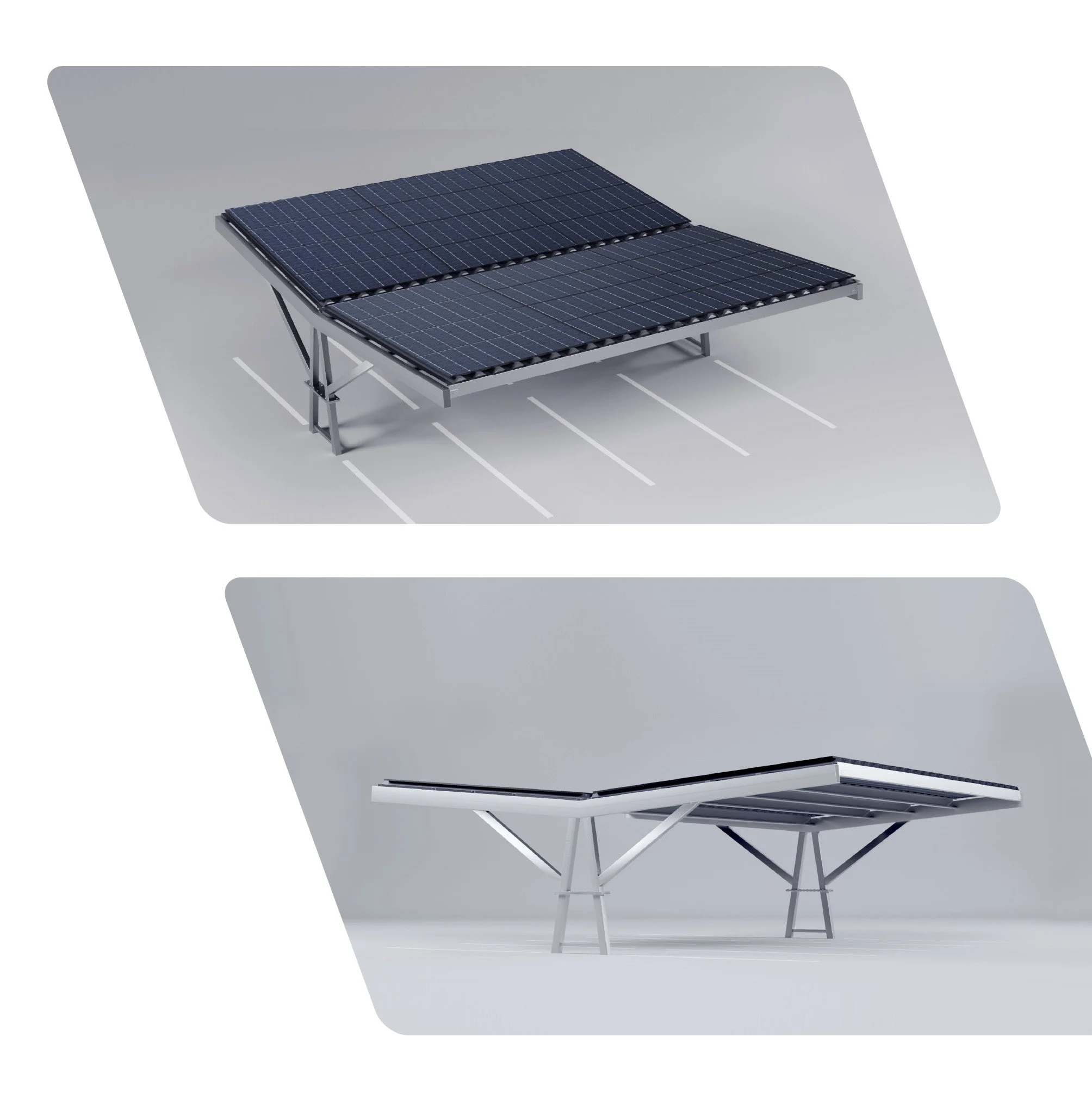 Dieses besonders robuste Modell A bietet als doppelreihiges Carport Platz für bis zu 8 Fahrzeuge.