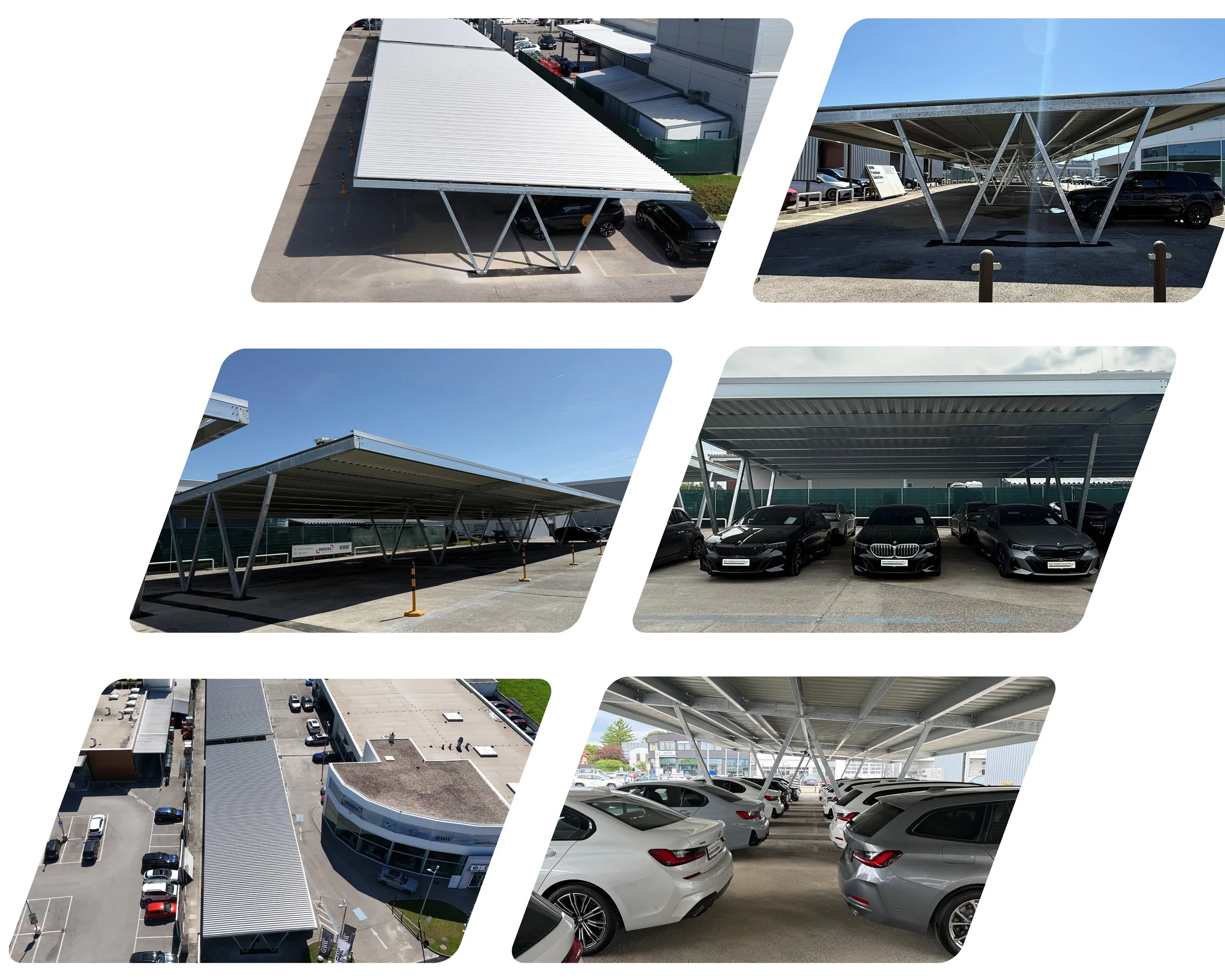 64 überdachte Stellplätze können mit einer 202 kWp starken PV Anlage belegt werden (wird zu einem späteren Zeitpunkt umgesetzt)